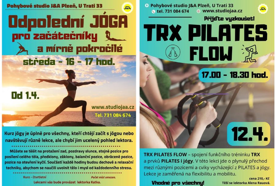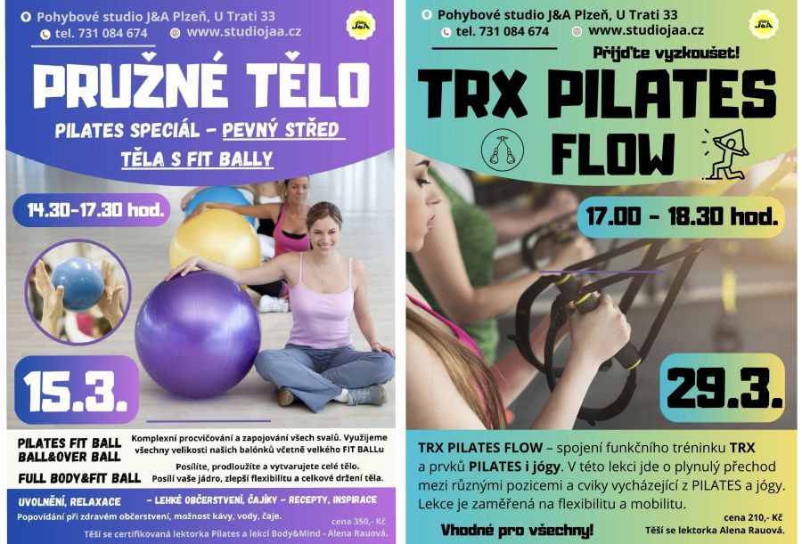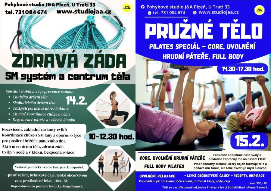 Vítejte na stránkách pohybového studia, které nabízí skupinové lekce nejrůznějších směrů pro všechny věkové kategorie. Vítejte u nás! Nabízíme rodinné prostředí, profesionalitu, moderní pomůcky a respekt k individualitě každého. Máme pro vás zdravý pohyb a těší nás radost z pohybu! V naší nabídce najdete lekce jak pro děti, tak pro dospělé, ženy i muže. Najdete u nás lekce i kurzy od výkonostního charakteru přes rekreační až k relaxačním a zdravotním formám. Nedílnou součástí našeho studia jsou kurzy pro děti od zájmových až po stupně výkonnostního a reprezentačního. Vyberte si, napište, zavolejte - rádi poradíme, těšíme se!