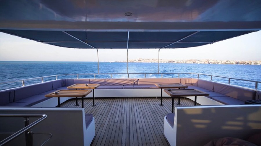 Na jachtě jsou vám k dispozici ubytovací části s kajutami, dále jídelna, velká společenská místnost (obývák), prostorná paluba pro posezení s barem (venkovní obývák), velká horní paluba sloužící pro opalování a odpočinek a nám poskytne také krásný prostor pro cvičení a meditační setkání, přední menší paluba také k dispozici pro opalování a relax, spodní paluba k odložení výstroje.