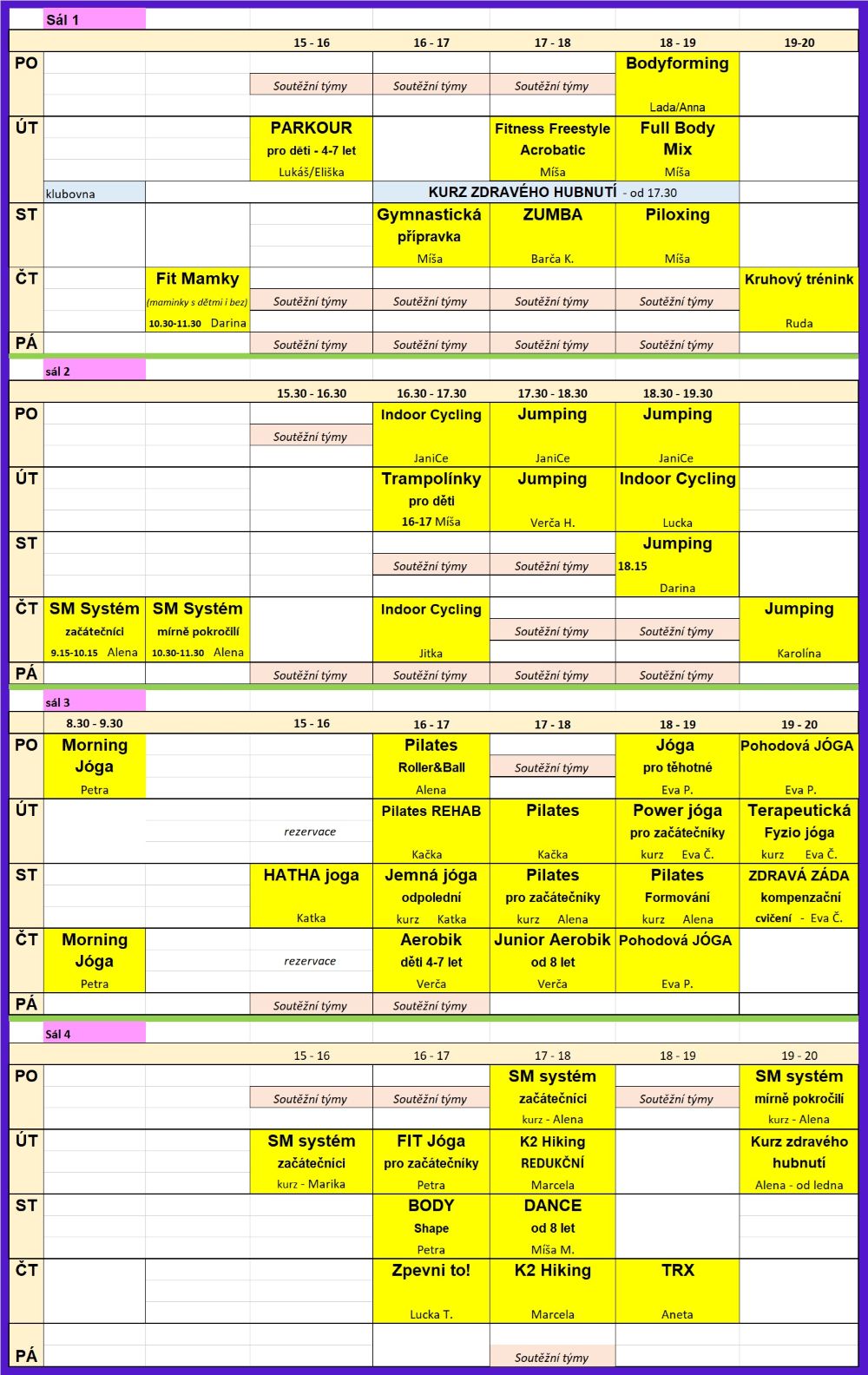 Pravidelný rozvrh - aktuální - nepřehlédněte NOVINKY!